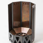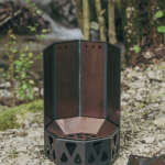 特徴は、8枚の脱着可能なパネル構造。調理やお湯を沸かす際など、火力を要するときは8枚全てのパネルを取り付けて二次燃焼を十分に発生させ、それ以外の時には適宜パネルを外すことで燃焼をコントロール可能だ。