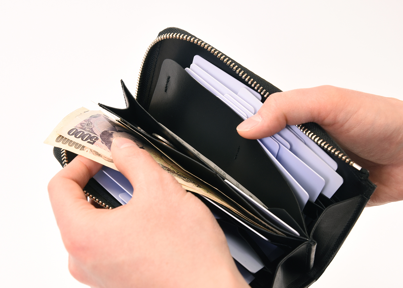 ▲コンパクトながらも大容量でたくさんのカードやお札が入る