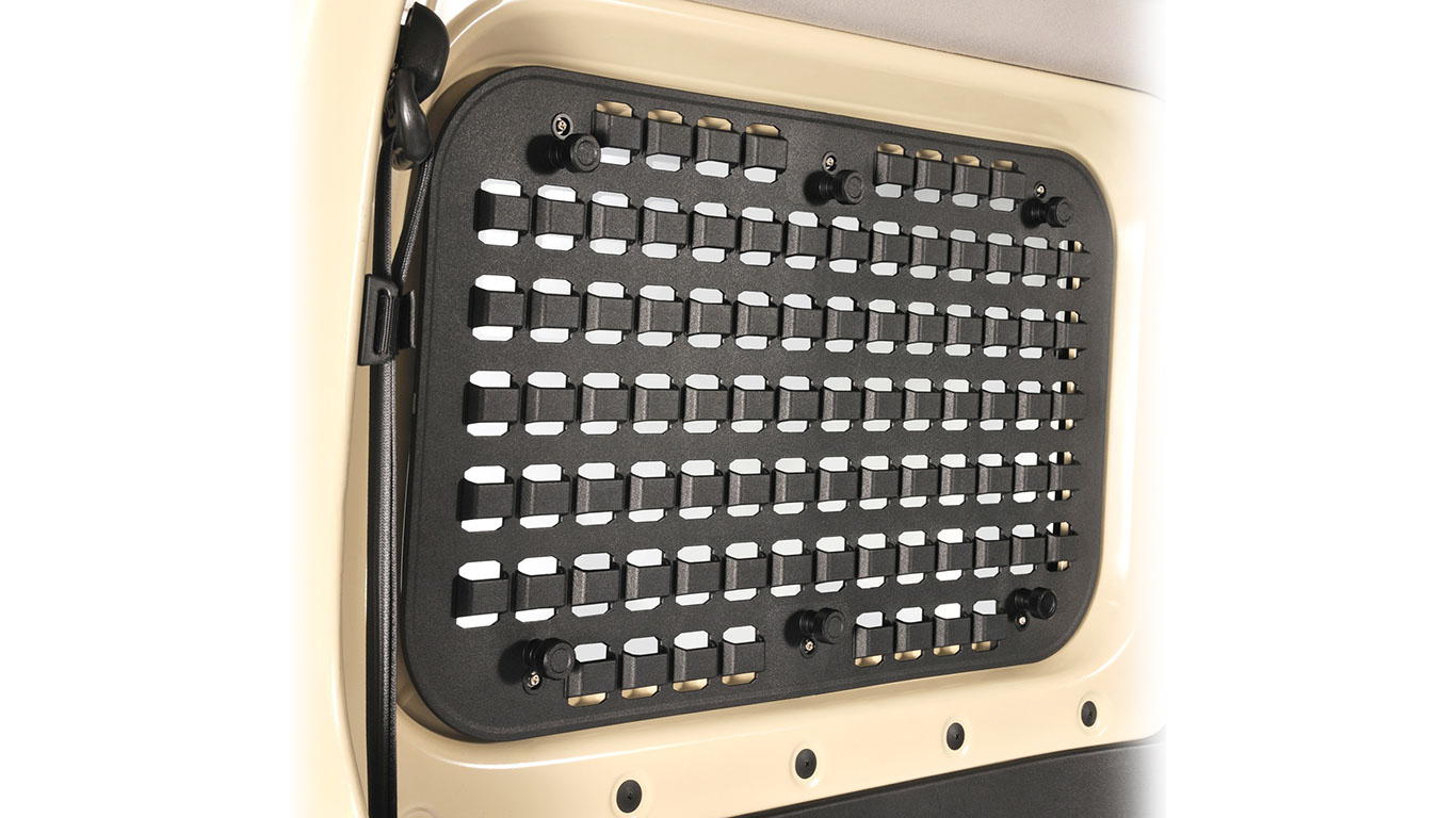 ラゲッジのサイドウインドウにピタリとはめ込めるパネルだが、表面は“モールシステム”に対応した帯状や格子状の凹凸形状となっている。
