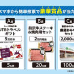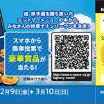 投票した人の中から、抽選で合計125名に豪華賞品をプレゼント。また、決勝戦終了までの期間中、エントリーメニューを注文するとショッピングコーナーで使えるお買物券(100円分)をプレゼント。