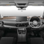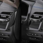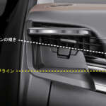 左右非対称のスタイリッシュなデザインで、側面は内装に合わせたシボ加工が施され、天面はドアスイッチパネルに合わせた仕上げのアクセントラインがあしらわれている。