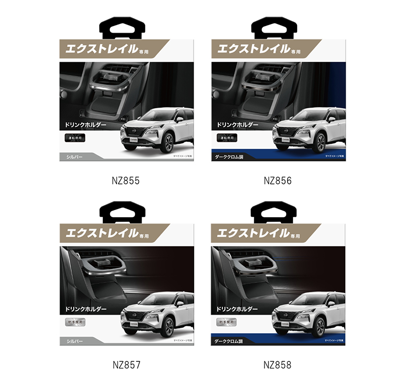 ▲ラインアップはNZ855(運転席用/シルバー)、NZ856(運転席用/ダーククロム調)、NZ857(助手席用/シルバー)、NZ858(助手席用/ダーククロム調)の4種類