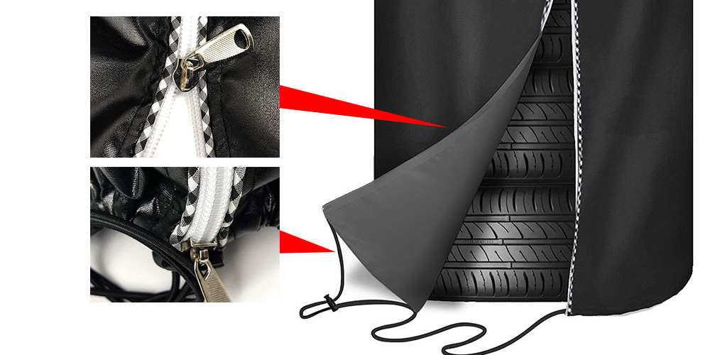 ▲ファスナーと締め付けロープを備えており、脱着作業は簡単にできる