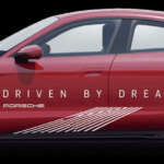 イベントに投入されるタイカンは、なんと全20台! ボディに施されるラッピングビジュアルには、現在と未来を表現する道筋の間に「DRIVEN BY DREAMS」というメッセージが表現されている。