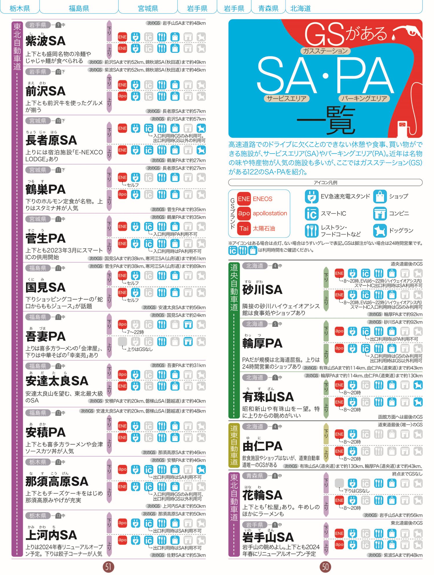 ▲「ガスステーションがあるSA・PA一覧」は充電施設やレストランなどの施設情報も確認できる