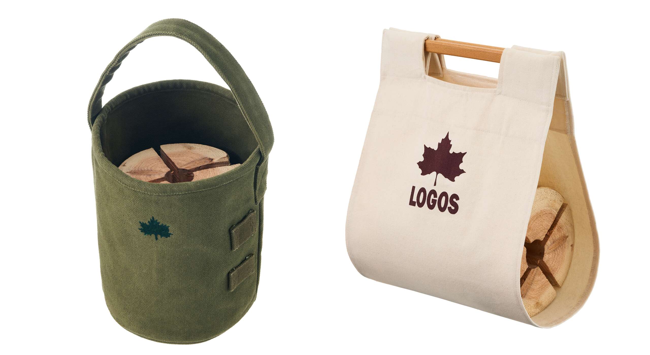 ▲ベイラーバッグ M(左)、らくらく薪キャリー(右)