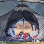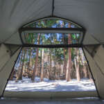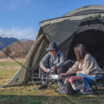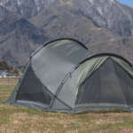 また、面積が広いメッシュなので通風性が高く、夏場のキャンプも快適に過ごせる。もちろん、スカート付きだから冬場のキャンプもドンと来いだ。ファブリックはリップストップ生地を採用して引き裂き強度を高め、耐水圧は2,000mm天井部に水がたまりにくい構造なのも要注目。