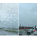 ▲強力な撥水効果で大雨でも良好な視界を確保する
