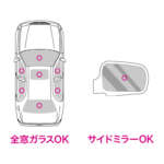 液剤はアルコール成分配合で塗りやすくムラのない透明感のある仕上がりとなる。全ウインドウガラス、サイドミラーに対応し、新車・撥水コート施工車にも使用できる。