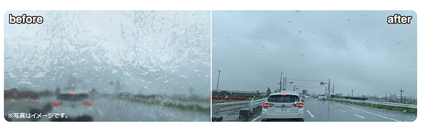 ▲強力な撥水効果で大雨でも良好な視界を確保する