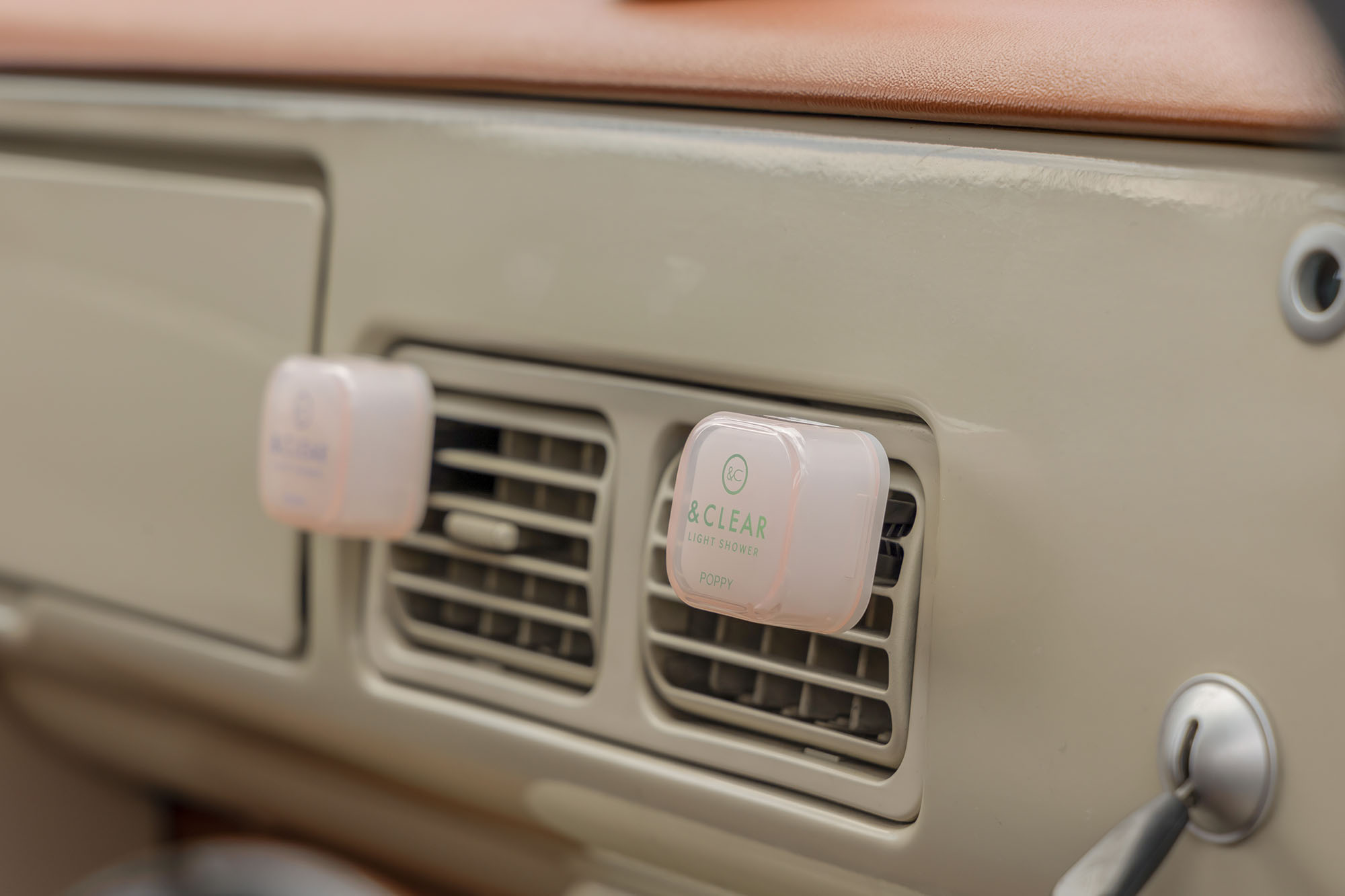▲エアコンルーバーに挟み込んで固定する「アンドクリアエアー」