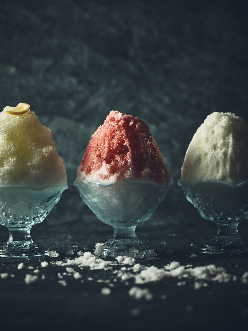 ▲秀月堂監修かき氷 いちご・レモン・ミルク・さくらみるく ※期間限定で1000円~