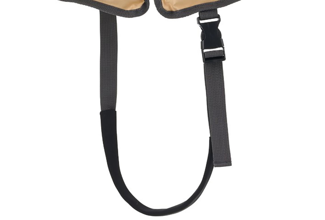 ▲股ベルトは股ずれを防ぐフォーム素材も採用。長さが調整できて着脱が簡単なバックルも備える
