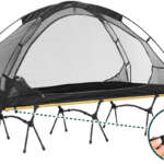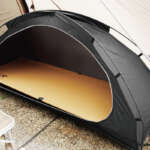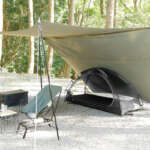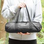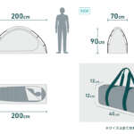 さらに、テント底部にコットを連結するためのベルトを2本設置。寝返りによるズレを防ぎ、テント内のスペースを最大限に活用可能。収納時には幅40cm×奥行12cm×高さ12cmとコンパクトになる。