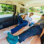 「フルフラットのルームモード」では、後席部分とラゲージに、大人二人が余裕をもって寝られる広さのフローリングが出現。