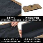 内部はお手入れしやすいポリエステルを採用。小物収納に便利な内側メッシュポケットも付く。使用しないときは畳めるのでクルマへの収納にも便利だ。