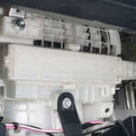 ▲純正のエアコンフィルターを手前に引き抜く