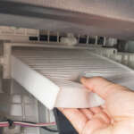 ▲エアコンフィルターの寿命は1年または1万kmだが、走行環境によっては交換時期はもっと早くなる