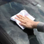 ▲乾燥したキレイなタオルで拭き取り作業。マイクロファイバークロスは効果が弱まるので使わない