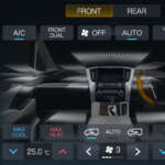 オートエアコンのコントロールでは純正操作パネル同様に設定が行え、アニメーションでも動作を表示する。