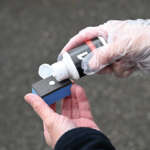 ▲水で濡らしてしっかりと絞った専用不織布で磨いた面の液剤を拭き取って完全に乾燥させる
