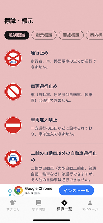 ▲標識や標示を一覧で見られる機能もある。この機会に改めてチェックしておきたい