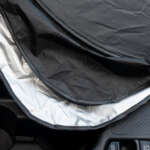 ▲車内側は黒いナイロン生地、外側はシルバー色のコーティングが施されている