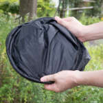 内部にリング状のバネが2組仕込まれていて、この反力で一瞬にして最大サイズになる。バネの力はそれほど強くないのでケガの心配もまずないだろう。