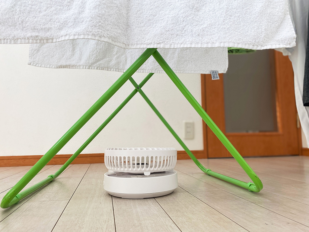 ▲家庭で使用する際はこのような状態で洗濯物の乾燥にサーキュレーターとして活躍