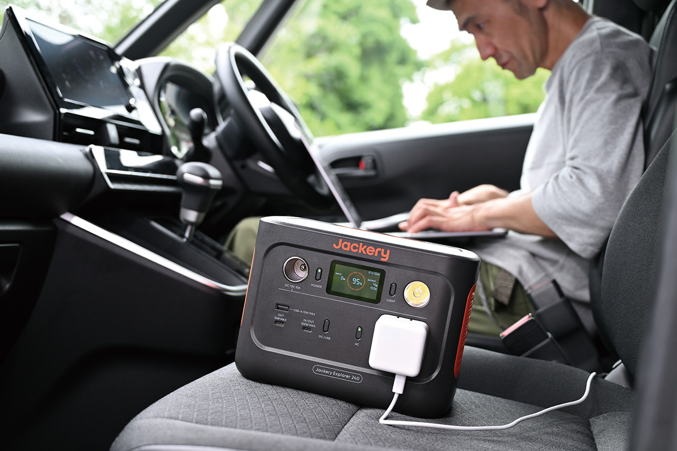 ▲車内でリモートワークしたり、キャンプで利用したりがしやすい、コンパクトなサイズ感で持ち運びも楽々