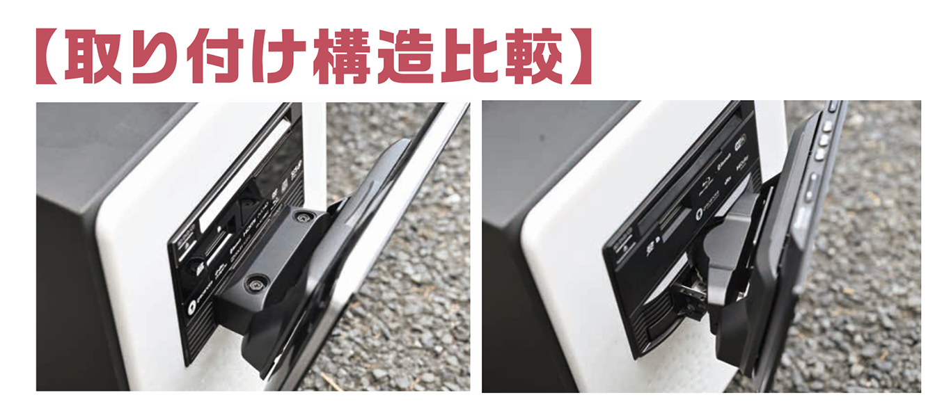 ▲CN-F1D(左)はDYNABIGディスプレイ。CN-F1X10BGDはDYNABIGスイングディスプレイで、左右角度の調整を可能にしている
