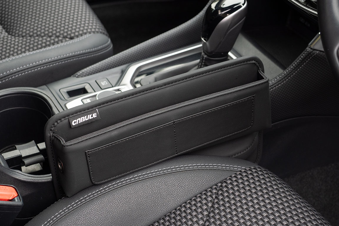 運転席からスッと手が届くところにスマホやペン、駐車券などを入れるような小物スペースがあると何かと役立つ。そこで注目されているのがフロントシートとセンターコンソールの隙間に差し込むように装着できる小物入れだ。