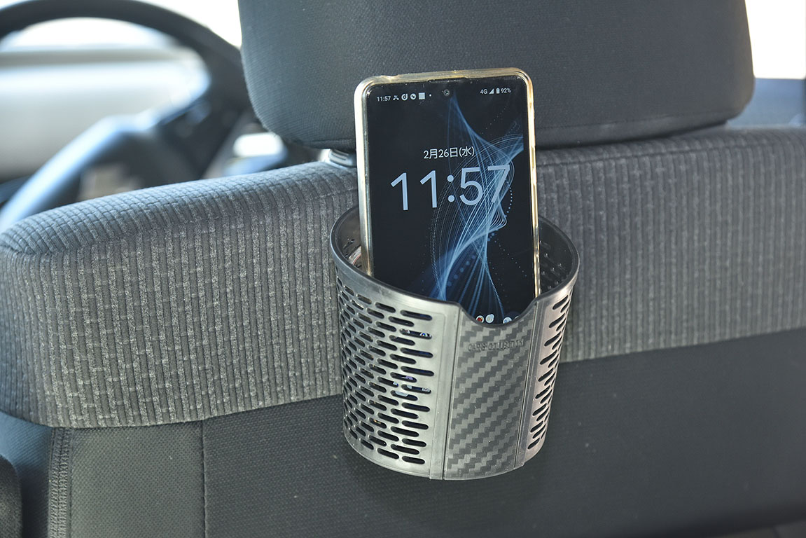 ▲ホルダーの直径よりやや大き目の小物も収納可。小物が暴れにくい