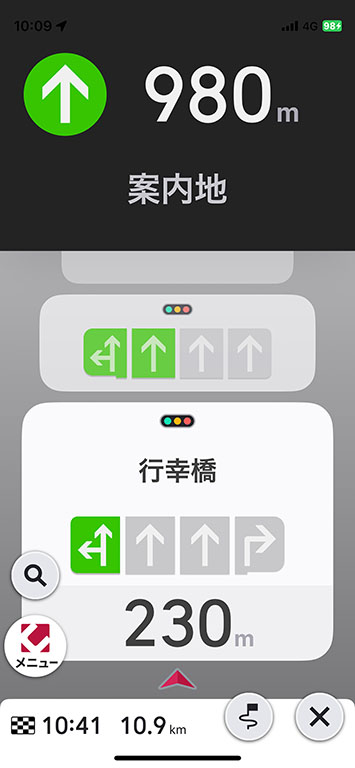 ▲ルートガイド中のフリップガイドモードでは案内ポイントの情報を絞ってリスト化
