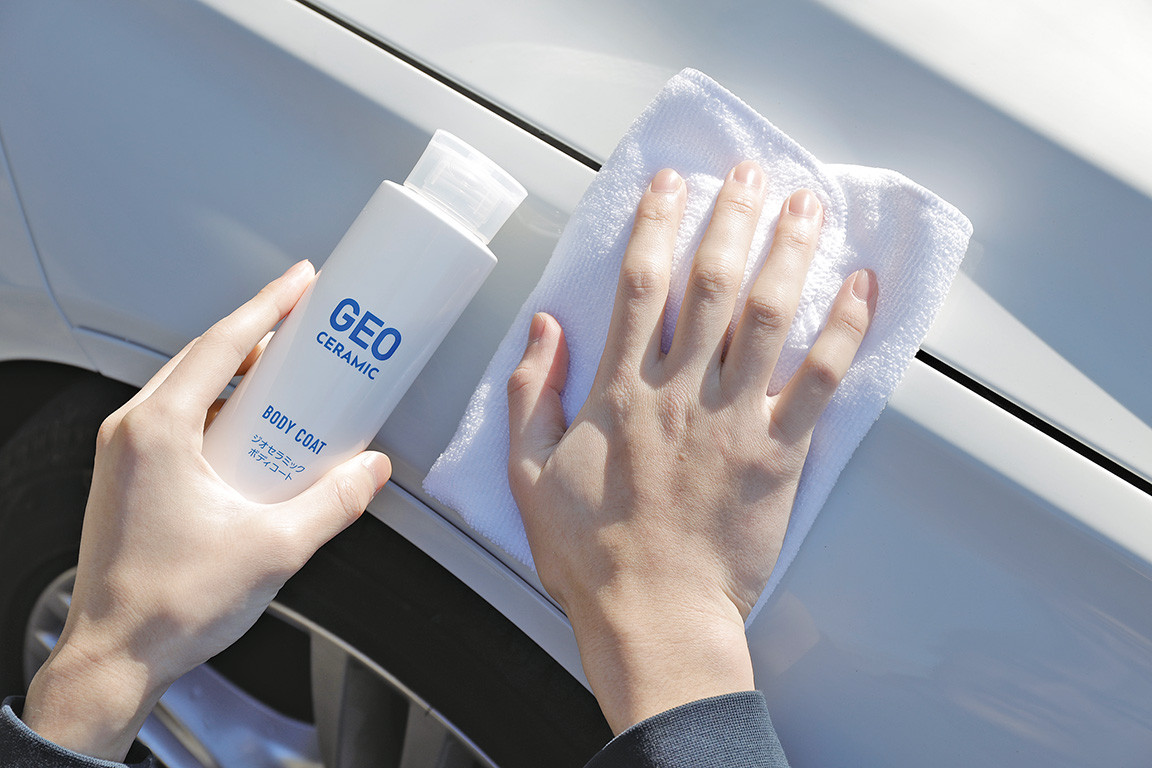 ▲ボディだけでなく、メッキや未塗装樹脂、ホイールなどにも使用できる。洗車後の濡れた状態でも使えるが、乾いた状態のほうが効果的