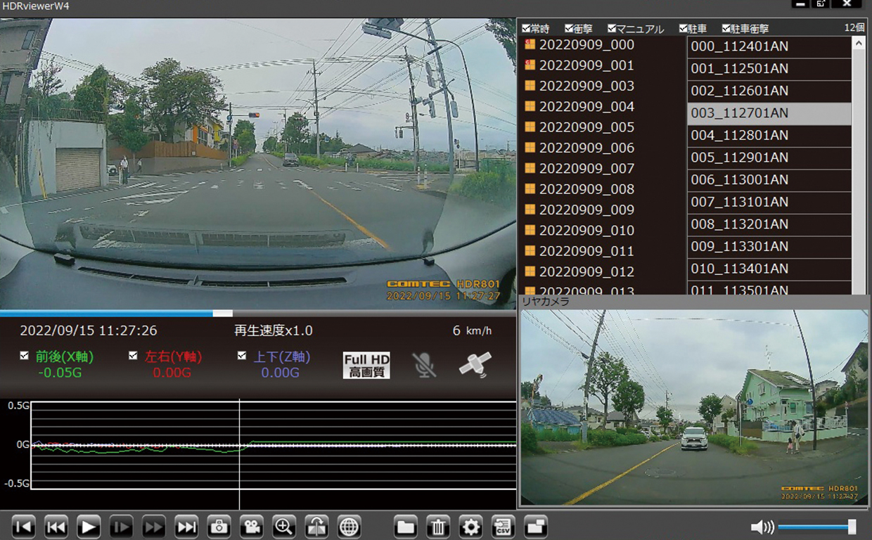 ▲PC向けの専用ビュワーソフトを用意。車両前後の映像を同時に確認できる