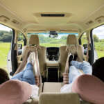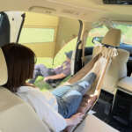 フルセットなら枕が頭を安定させクッションが腰から太ももまで優しく包むので車内とは思えない寝心地。