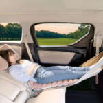 オプションのクッションやまくらを併せて使用するとより快適になる。実際に車内で使ってみたが、足を伸ばして寝られるのは思いのほか体がラクだ。