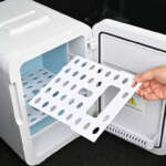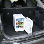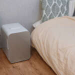 ▲電源ケーブルのほかシガーケーブルも付属しているので、家でも車内でも使用できるのが便利。ペルチェ式の静音設計のため、ベッドサイドにも起きやすい。スタイリッシュなデザインなので、部屋の雰囲気も壊さない