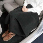 車内が底冷えしているときも、電熱ヒーター付きのひざ掛けを使えば安心。ヒーター部分が高温になったときは、一旦加熱をストップしてくれるので安心。モバイルバッテリーを使えば、家や会社でも使える。