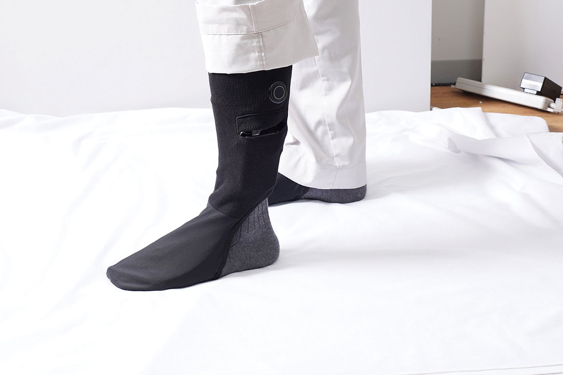 ▲とても薄いので、見た目も履いているのがわからない。靴を履いてもごわつかない
