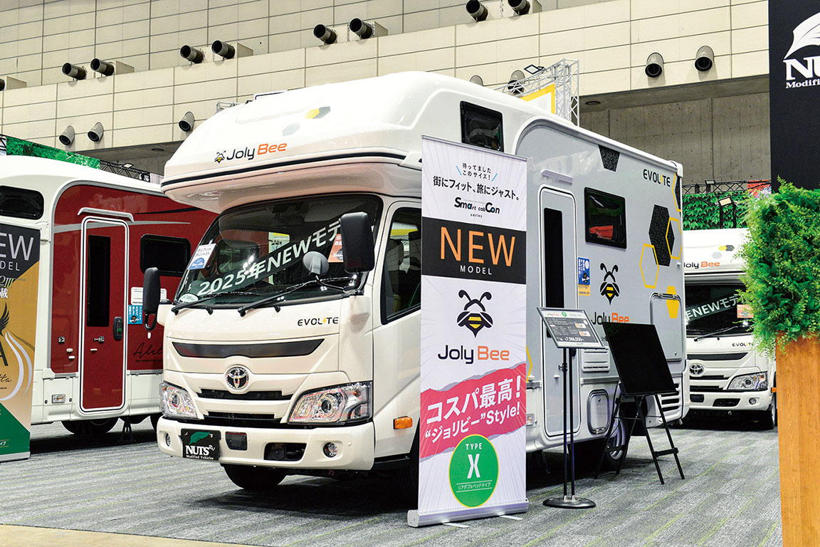 ジョリビーはナッツRVのキャブコン史上最小の全長4.7m台に抑えたモデルで、車庫証明を取得しやすいのがメリット。