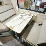 ▲セカンド/サードシートで作る対面ダイネット。サードシートの背もたれを外すとエキストラベッドに展開できる