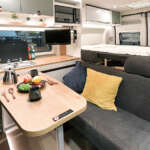 デュカトベースのキャンピングカーは欧州車のレイアウトを踏襲したものが多く、大人2人旅を想定した「乗車2名/就寝2名」でトイレ&シャワールームが備わる間取りが主流だったが、日本でニーズが高いのは子どもを含め4~5名が各々ゆったり寝られるファミリー仕様。ハイエースのスーパーロングとキャブコンの間という位置付けだ。