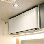 ▲家庭用エアコンの「クールコンプシステム」はオプション。上部収納棚のスペースにスタイリッシュに収められている