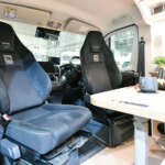 ▲ロングドライブの疲労を軽減してくれるレカロシートはオプション。台座が回転し、セカンドシートとダイネットを形成