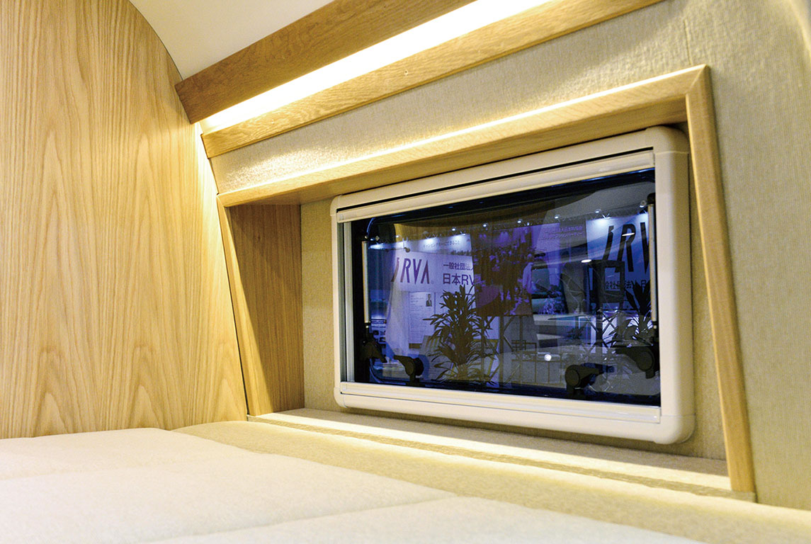 ▲運転席側のサイドウインドウはオリジナルの出窓に換装されている。アクリル二重窓が備わり、室内幅をワイド化