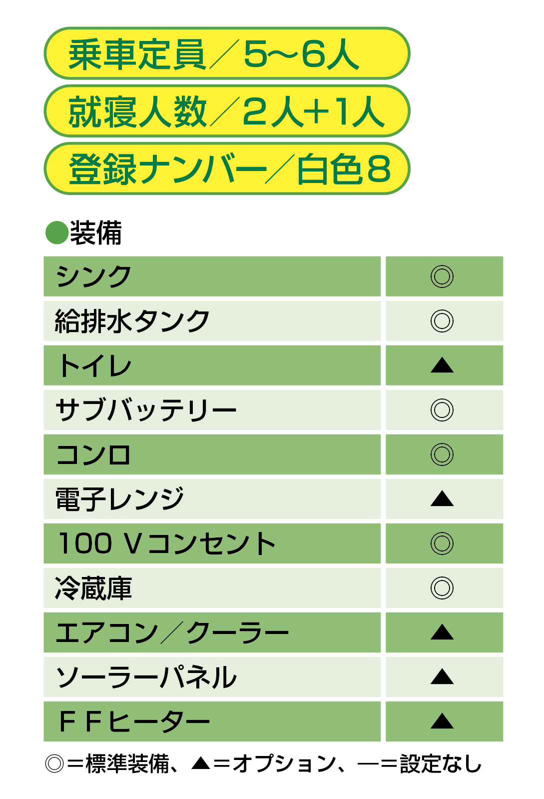 • 縦向き2段ベッドと対面式対座でゆとりの就寝とくつろぎを両立したキャラバンベースモデル
