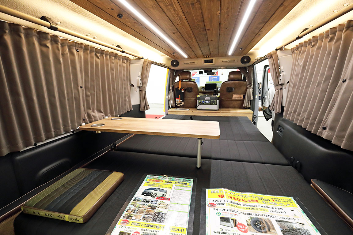 ▲テーブルの脚が折り畳めて、2/3列目シートを対面させたダイネットモードでもベッドモードでも使える
