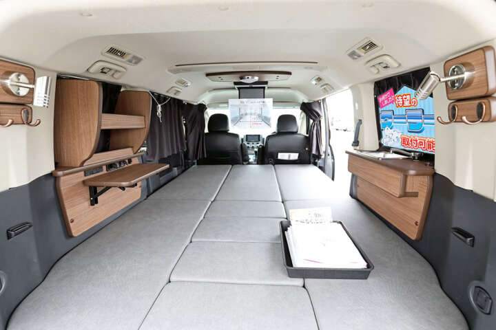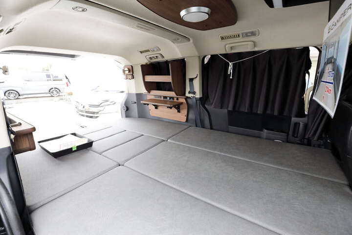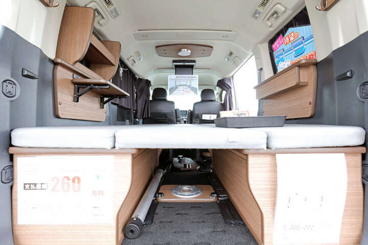 ▲登録ナンバーは元の3ナンバーのまま。ベッドキットは取り外し可能で「積載物」扱いになる